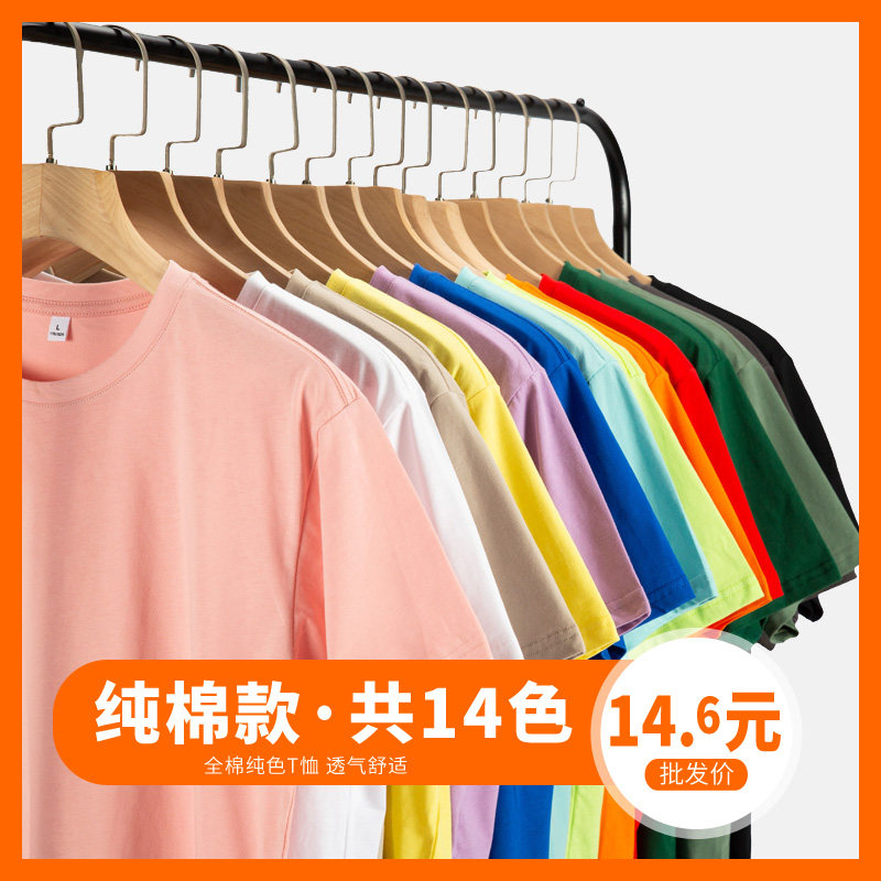 [纯棉款] 纯色T恤定制短袖衣服印字logo订做广告文化衫圆领工作服热门设计联盟服务商