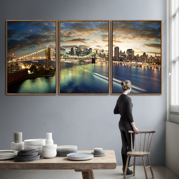 城市建筑桥风景挂画客厅酒店办公室沙发背景卧室大副装饰画三联画热门设计联盟服务商