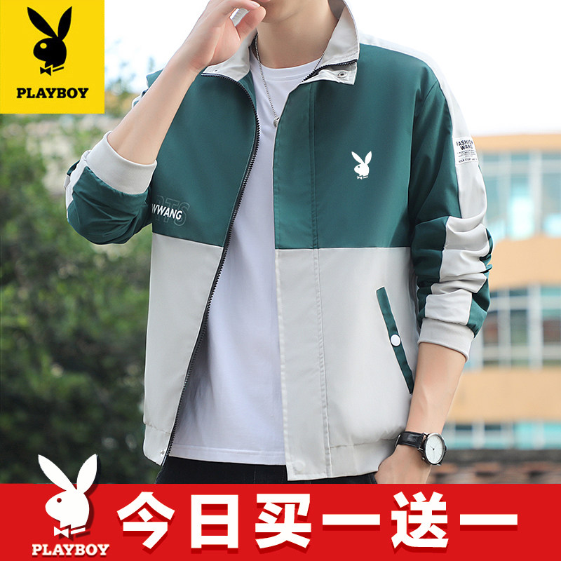 花花公子男士外套春秋款韩版潮流休闲拼色工装夹克男青少年上衣服热门设计联盟服务商