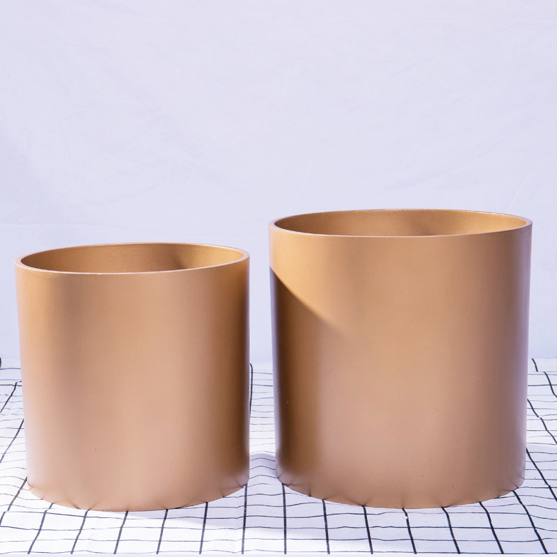 宏琳居圆柱金属面花盆搭配铁架木架室内外装饰落地家居景观热门设计联盟服务商
