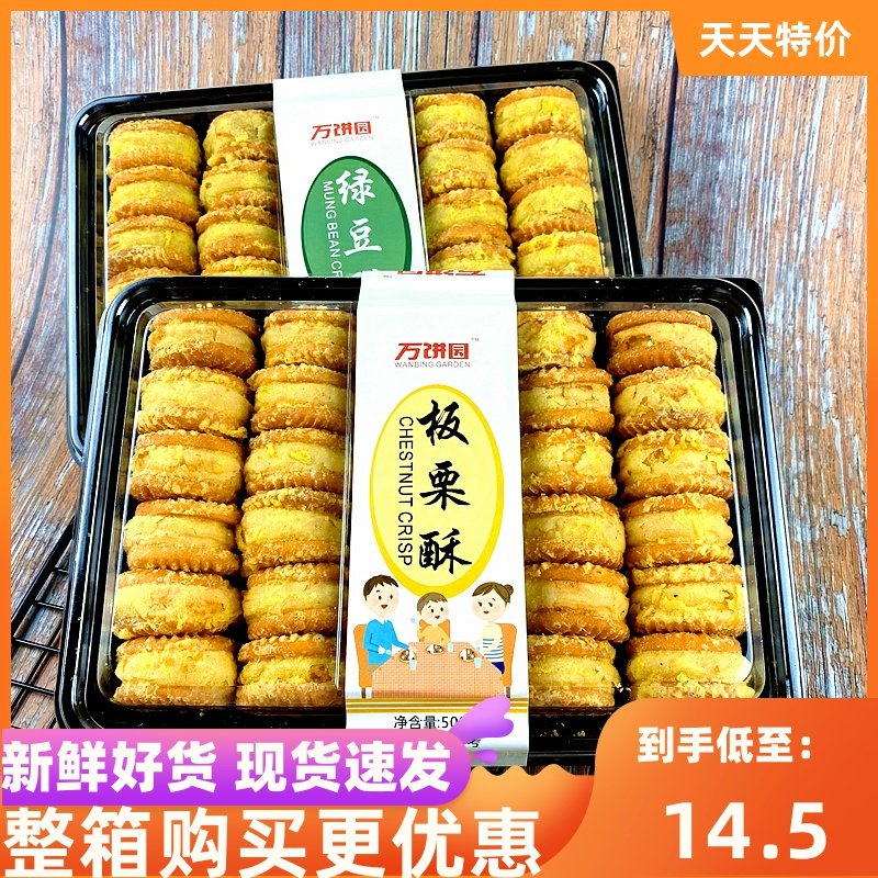 万饼园板栗酥绿豆酥传统老式糕点儿童办公网红款零食小吃500g装