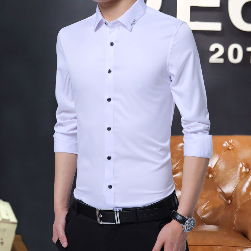 力免烫春季男士长袖衬衫修身青年商务衬衣韩版伴郎结婚婚礼寸衫热门设计联盟服务商