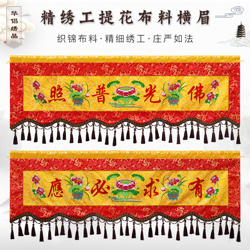 新款佛堂横眉横幅横彩刺绣佛龛用品佛光普照莲花提花面料绣品华侣热门设计联盟服务商
