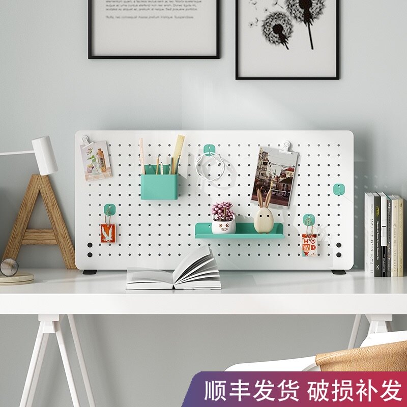 桌面洞洞板置物架免打孔可立式办公室好物儿童学习书桌隔板收纳墙热门设计联盟服务商