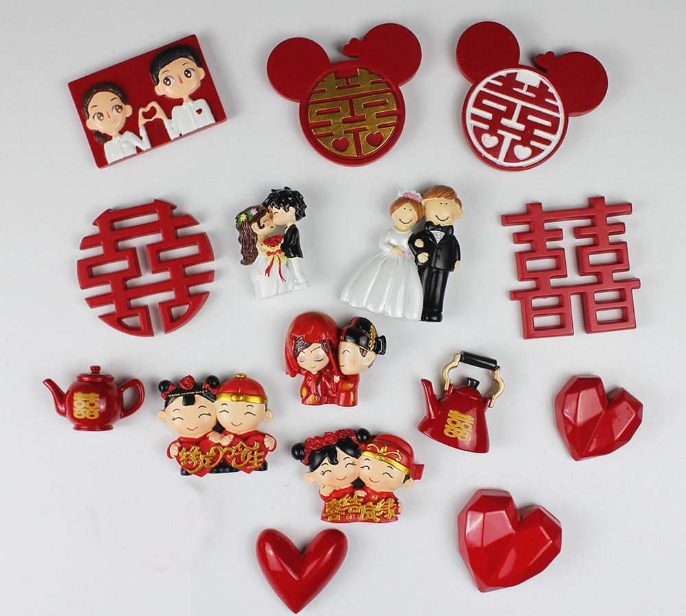 卡通婚礼结婚登记照片婚庆新房树脂磁贴情侣喜字磁力贴留言白板贴热门设计联盟服务商