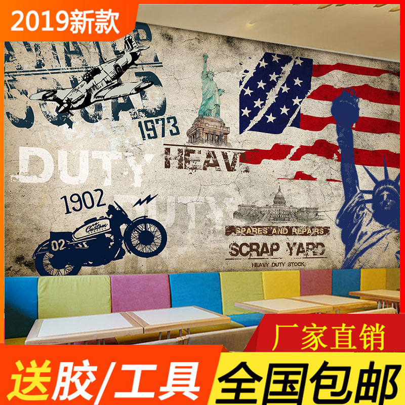 美式工业风格装饰壁纸自由女神像怀旧复古装修背景墙壁画个性墙纸热门设计联盟服务商