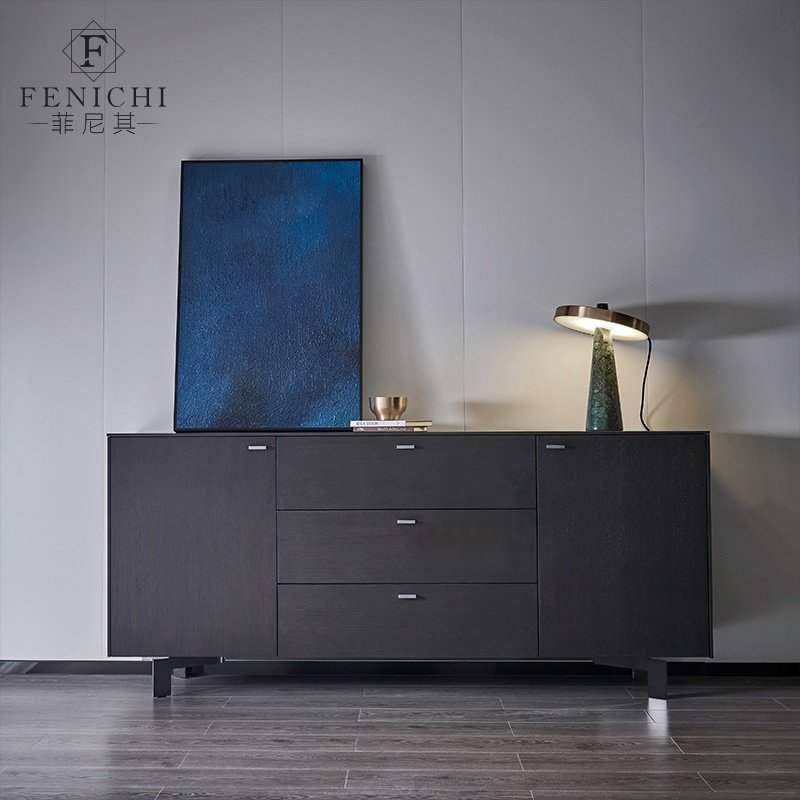 新款意式极简白蜡木实木影视柜简约客厅黑色储物柜电视柜热门设计联盟服务商
