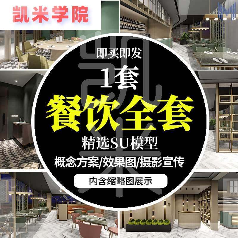 模型餐饮空间设计全套施工图效果图素材+SU工装实景PPT+CAD成品42热门设计联盟服务商