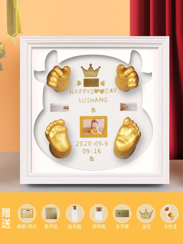 宝宝手足印泥手模脚模型3d立体石膏婴儿胎毛满月百天满月纪念相。热门设计联盟服务商