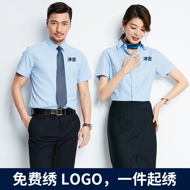 职业装衬衫短袖女夏酒店售楼部工作服培训机构定制长袖衬衣绣LOGO热门设计联盟服务商