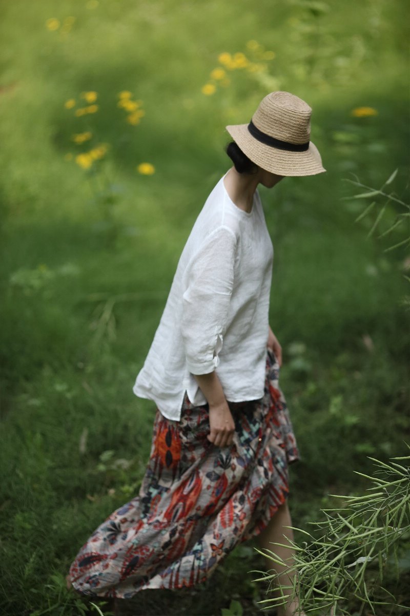 念山製丨莯璃丨复古文艺苎麻数码印花半身裙大摆蛋糕裙A字长裙。热门设计联盟服务商