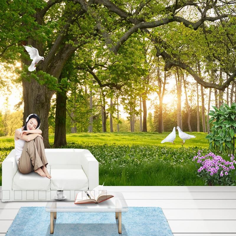 新品3d墙纸5d壁画中式客厅电视背景墙壁纸无缝影视墙布8D树林风景热门设计联盟服务商