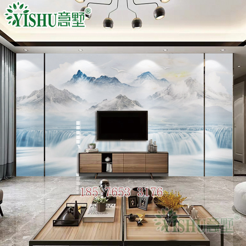 新晶岩板大板电视背景p墙客厅新中式轻奢微晶石影视瓷砖人造大理热门设计联盟服务商