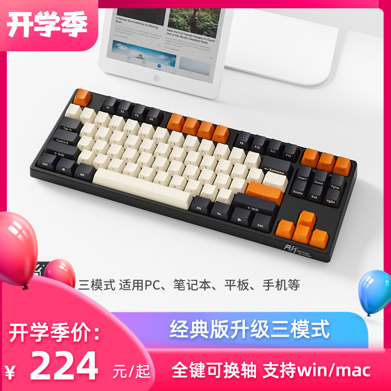 RK987三模无线蓝牙机械键盘热插拔轴87键青轴茶轴红轴黑轴PBT键帽电竞游戏办公mac平板电脑笔记本男女通用热门设计联盟服务商
