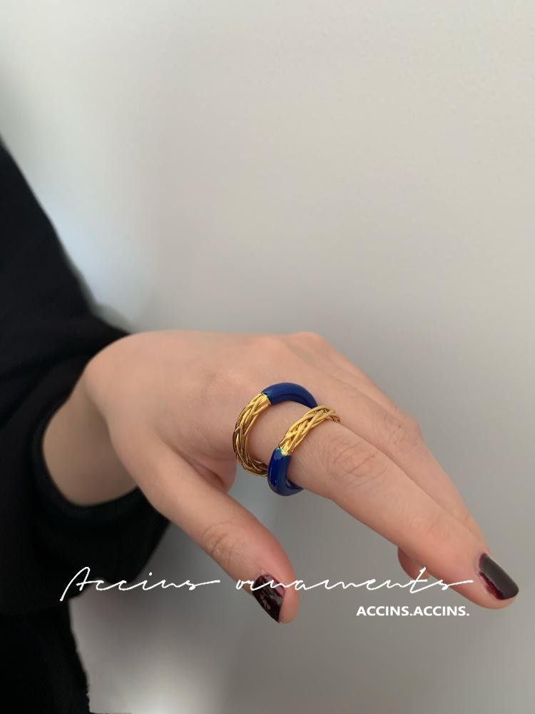 accins 宝蓝滴釉双拼金属交错编织个性男女戒指小众设计色彩指环热门设计联盟服务商