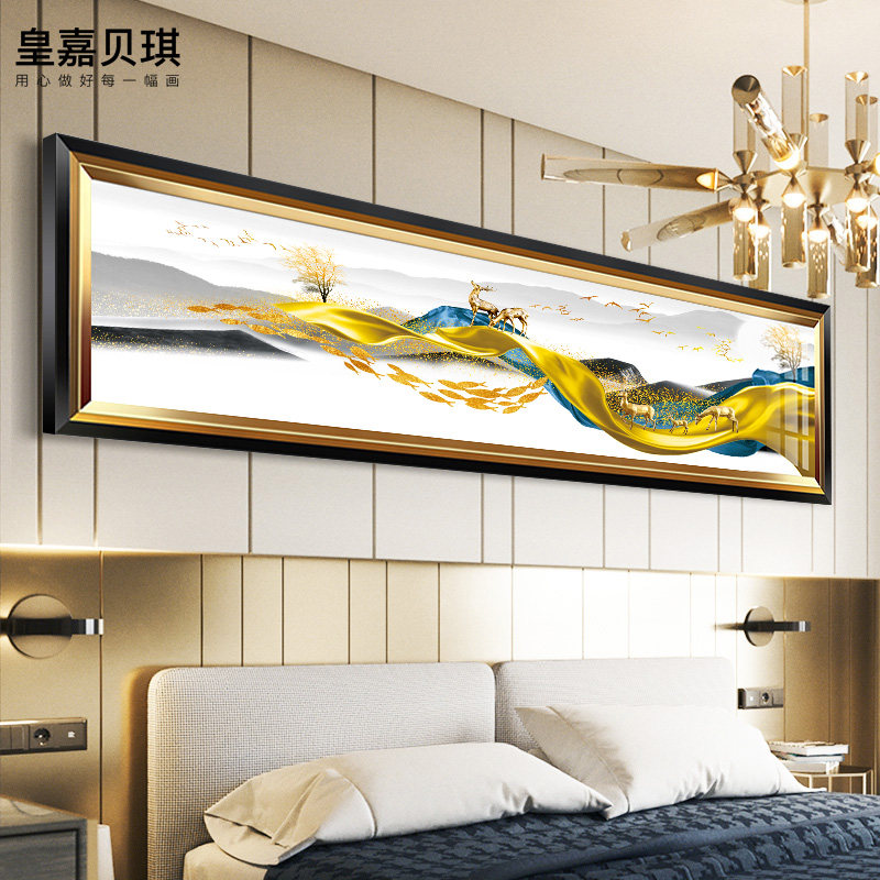 晶瓷晶钻画卧室装饰画现代轻奢客厅麋鹿挂画横幅美式房间床头壁画热门设计联盟服务商