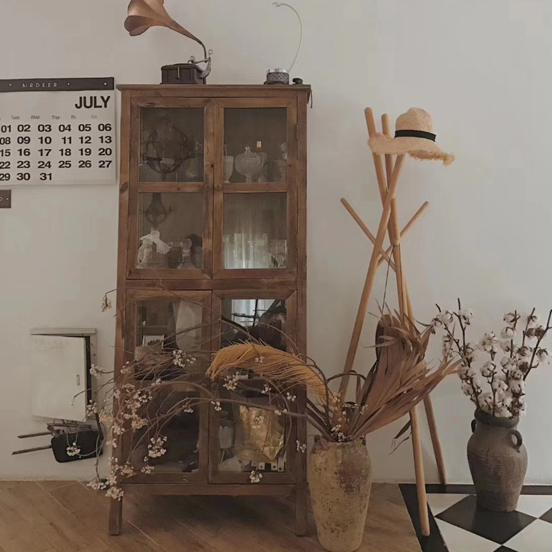 美式乡村复古实木玻璃门餐边柜展示柜书柜酒柜储物柜民宿装饰柜子热门设计联盟服务商