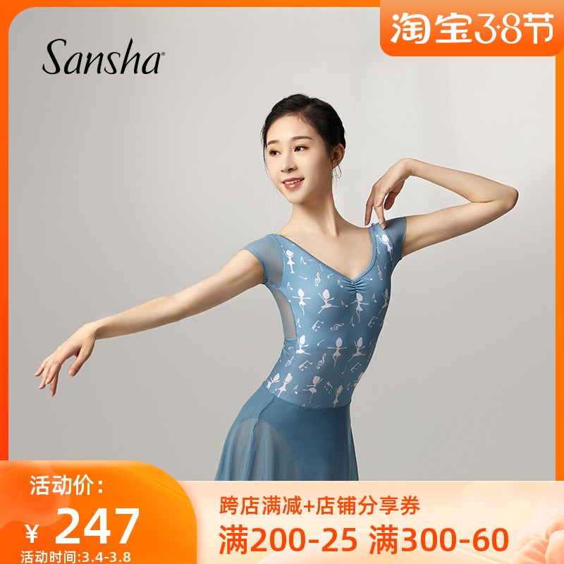 sansha 法国三沙成人短袖芭蕾舞练功服 舞蹈连体服带裙古典体操服热门设计联盟服务商