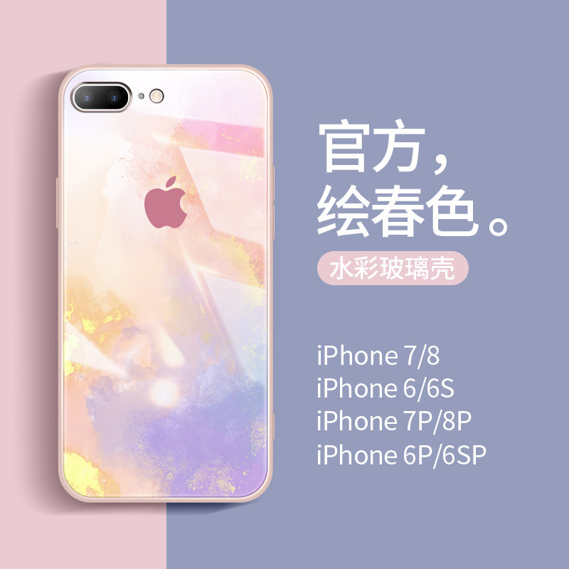 苹果8plus手机壳玻璃水彩iPhone7全包防摔6s硅胶plus六6七八女男6sp网红潮牌7p简约2021新款绘8p时尚外壳热门设计联盟服务商
