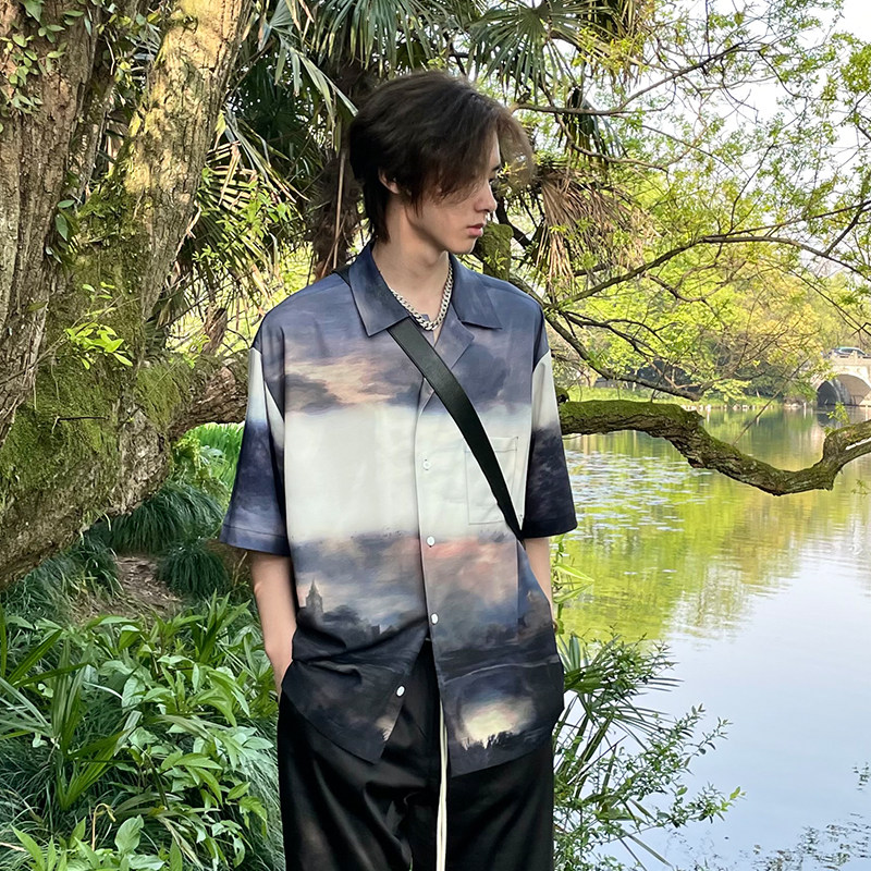 KREATE 设计款 范德尔桥油画印花 休闲雇领满印夏威夷短袖衬衫热门设计联盟服务商