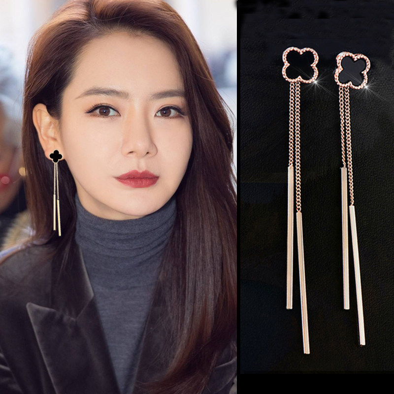 四叶草耳环长款气质耳饰夏季网红耳钉女2021年新款潮耳坠耳夹款热门设计联盟服务商