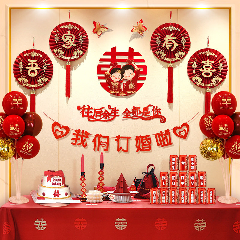 网红我们订婚啦布置装饰仪式感物品背景墙简单现场宴气球房间酒店