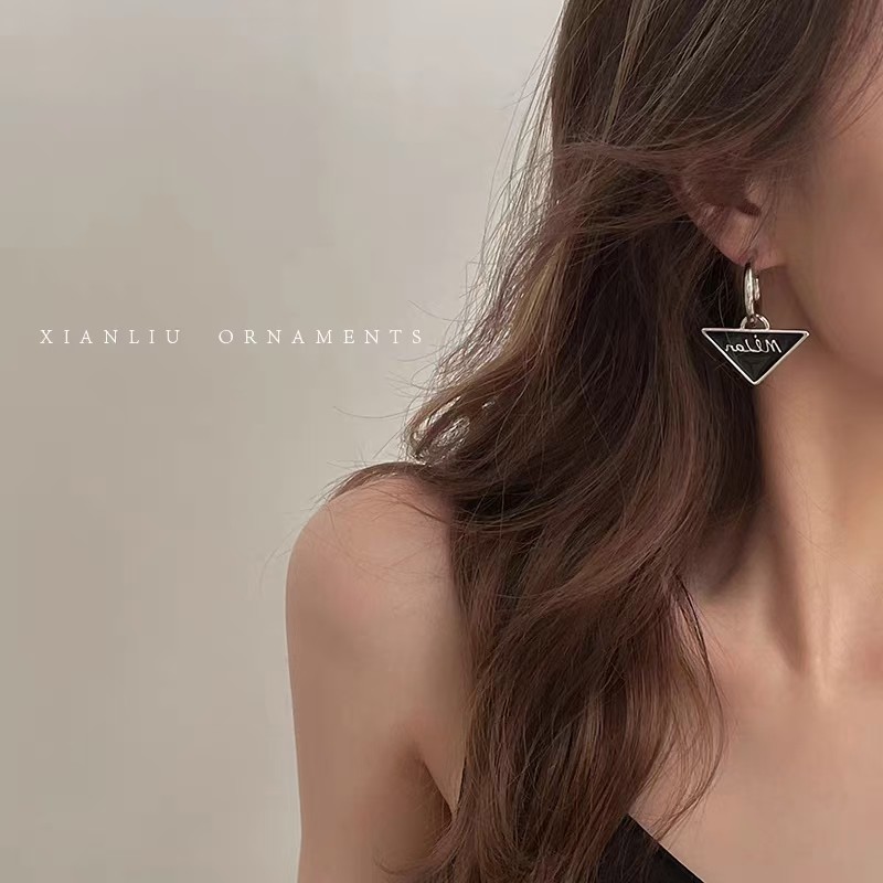 S925银针小众设计网红款耳圈冷淡风三角形吊坠淑女耳环耳 34号热门设计联盟服务商