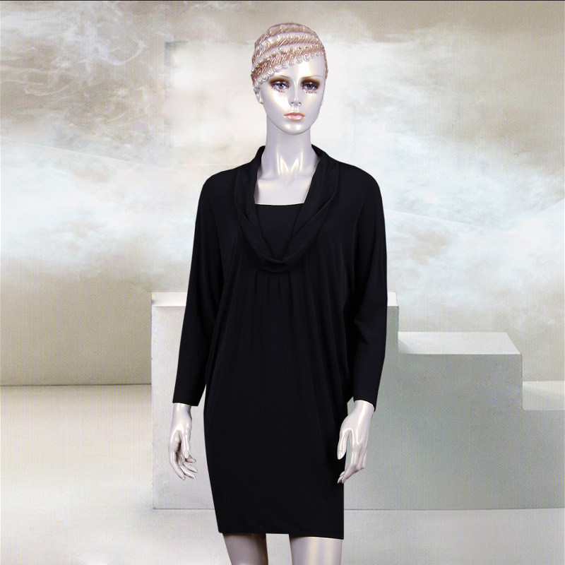 MINZE STYLE香港名师路黑色围巾领抽褶气质长袖宽松连衣裙J均码热门设计联盟服务商