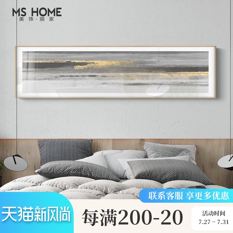 艺术抽象卧室装饰画现代简约横幅床头画北欧轻奢民宿酒店房间挂画热门设计联盟服务商
